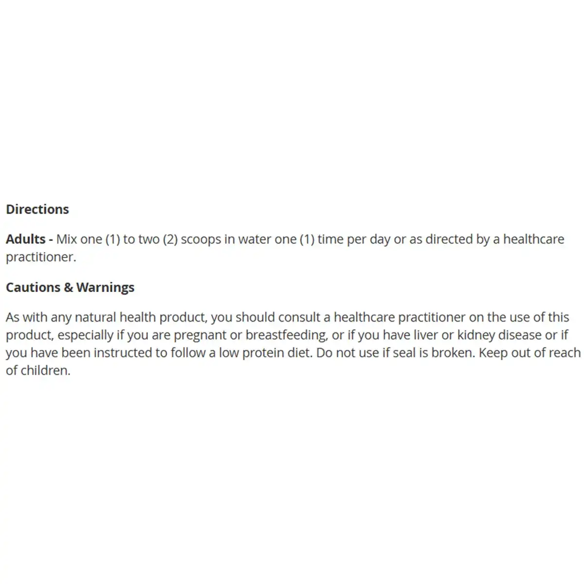 We recommend that customers always read and follow the label, ingredient list, warnings, and directions provided on the product packaging prior to use, and not rely solely on information presented on this website.